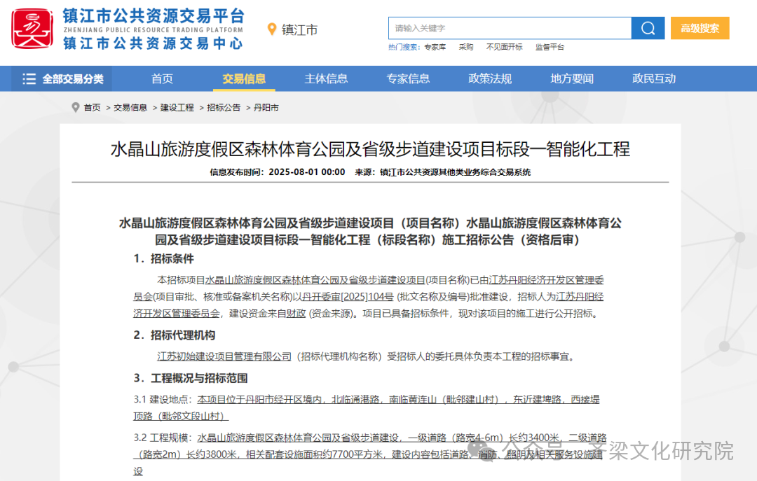 工程规模:水晶山旅游度假区森林体育公园及省级步道建设,一级道路(路宽4-6m)长约3400米,二级道路(路宽2m)长约3800米,相关配套设施面积约7700平方米,建设内容包括道路、消防、照明及相关服务设施建设