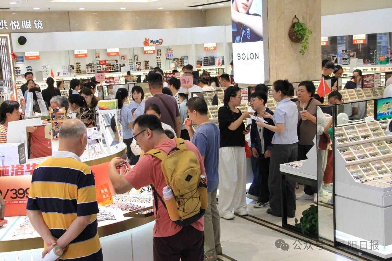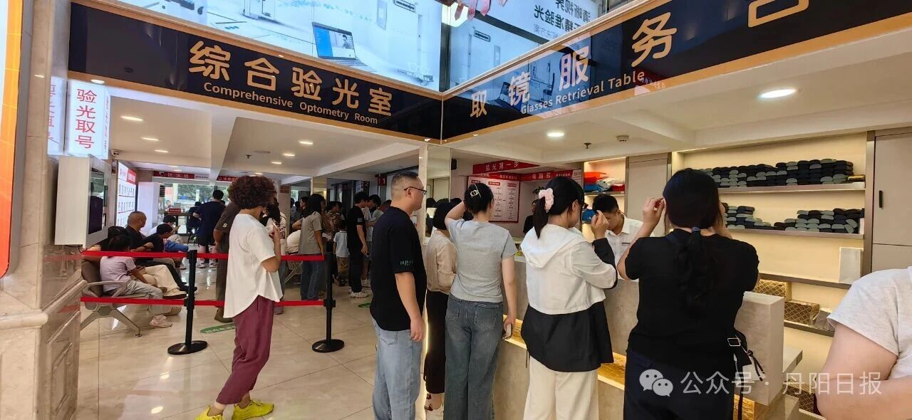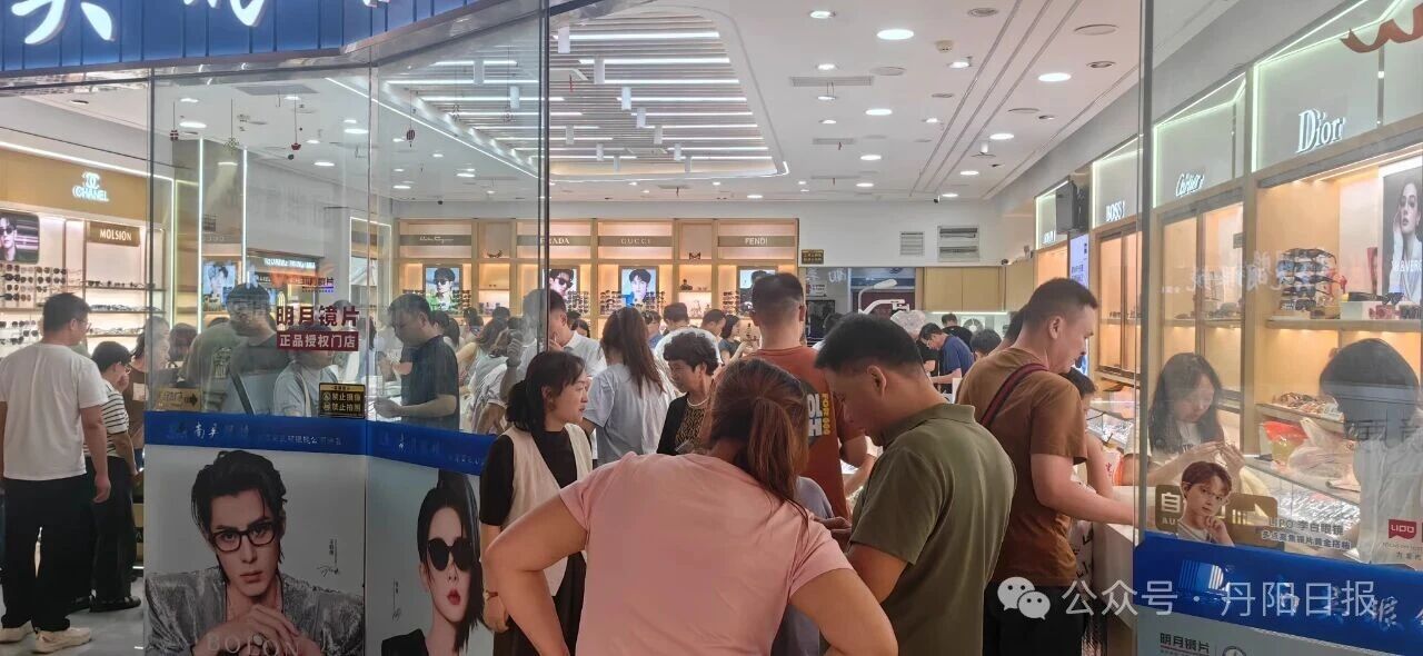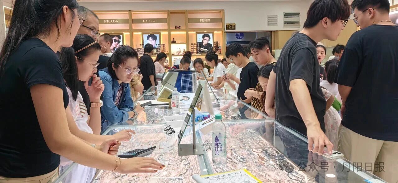 当天上午,丹阳眼镜城各门店便陆续迎来客流,验光区、镜架选购区、收银台均人头攒动,热闹非凡。