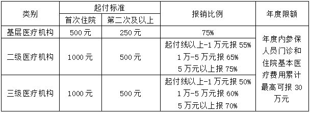 ● 居民医保:除享受新农合住院待遇外,经基本、大病等报销后个人自付的合规的二级及以上医疗机构的住院费用,普通居民再报(30+保龄)%、最高50%,老年居民再报(45+保龄)%、最高65%。
